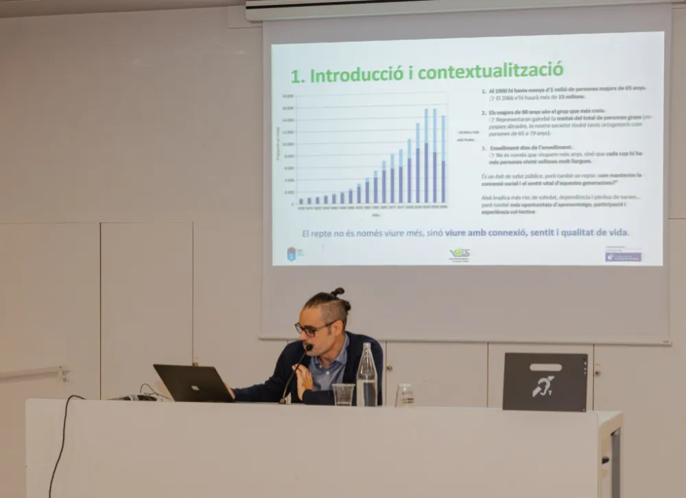 Yesterday evening, the Mestre Martí Tauler Library in Rubí hosted a new activity from the Rubí University Extension Classroom in collaboration with AmicsUAB, which marked the group's reunion after the start of the academic year. Approximately 35 people attended the lecture entitled Desired Solitude or Social Isolation: Impacts on Mental Health in the Elderly, given by Guillermo Parra, professor of Psychology at the Autonomous University of Barcelona.